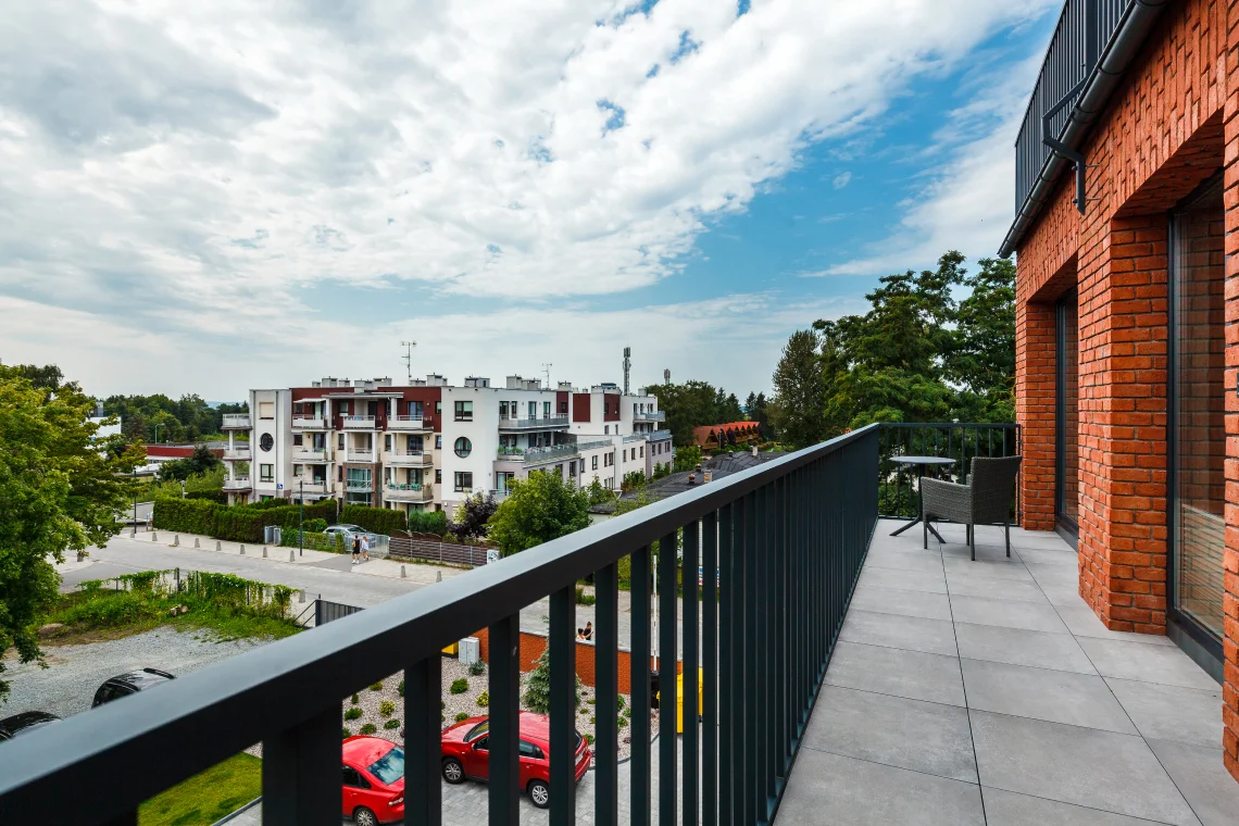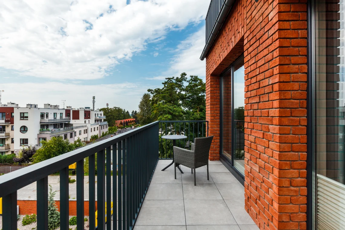 - Balkon z krzesełkami i stolikiem