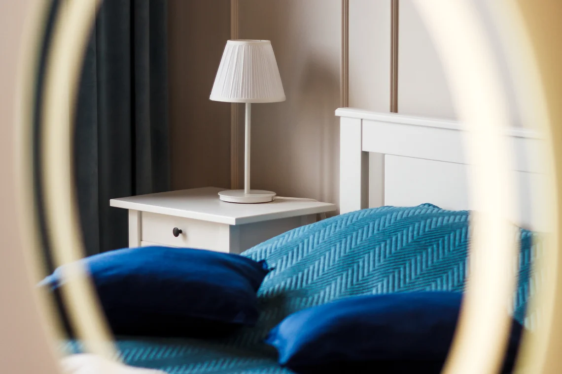 Rozkład łóżek: sypialnia większa: łóżko małżeńskie 160 x 200cm, sypialnia mniejsza: łóżko małżeńskie 140 x 200cm, salon: 1 rozkładana sofa, która po rozłożeniu ma wymiary 140 x 200cm